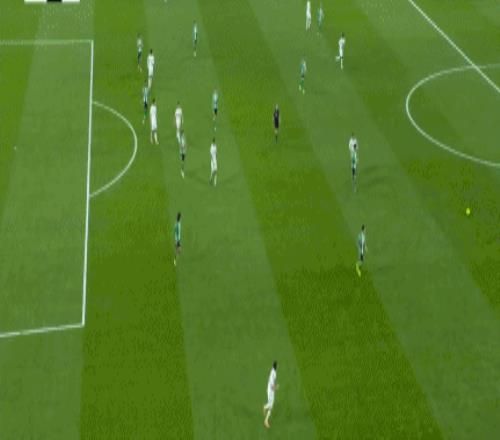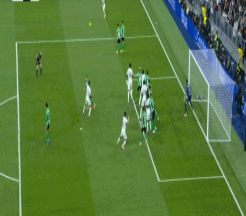 易边再战皇马继续加强进攻,开场仅4分钟,皇马右路推进,巴尔韦德60度角处精准过顶斜吊,贡萨洛插上禁区弧顶右侧胸部将球卸下,随后顺势转身凌空扫射,皮球又是直入球门右下死角,贡萨洛梅开二度,皇马2:0领先。仅仅再过6分钟,皇马再来,右侧角球机会,罗德里戈主罚兜传门前,阿森西奥小禁区前沿抢点强力头槌攻门,皮球应声入网,皇马3:0领先。第61分钟,贝蒂斯获得禁区右侧角上任意球机会,罗塞尔索操刀主罚大力兜射,皮球绕过人墙直奔球门远角而去,BOOM的一声皮球被门柱挡出,皇马逃过一劫。